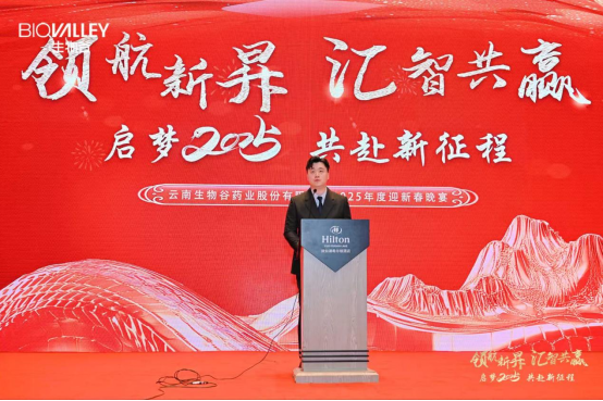 展望2025,不負(fù)未來征途。云南生物谷藥業(yè)股份有限公司董事長林弘威先生為盛典致辭。他代表公司董事會,向所有奮斗在一線的同仁表示深切問候,并向支持公司的各級政府、各界領(lǐng)導(dǎo)表示崇高的敬意和誠摯的新春祝福。致辭中,他講述了生物谷藥業(yè)2025年整體戰(zhàn)略規(guī)劃,強(qiáng)調(diào)生產(chǎn)安全與藥品質(zhì)量是企業(yè)的發(fā)展基石,生物谷必將嚴(yán)格遵守生產(chǎn)流程管理制度,加強(qiáng)質(zhì)量管理體系建設(shè),推行綠色低碳理念,全鏈條培育和發(fā)展中藥材產(chǎn)業(yè),做高質(zhì)量的民族藥、中醫(yī)藥,踐行生物谷藥業(yè)可持續(xù)發(fā)展之路。